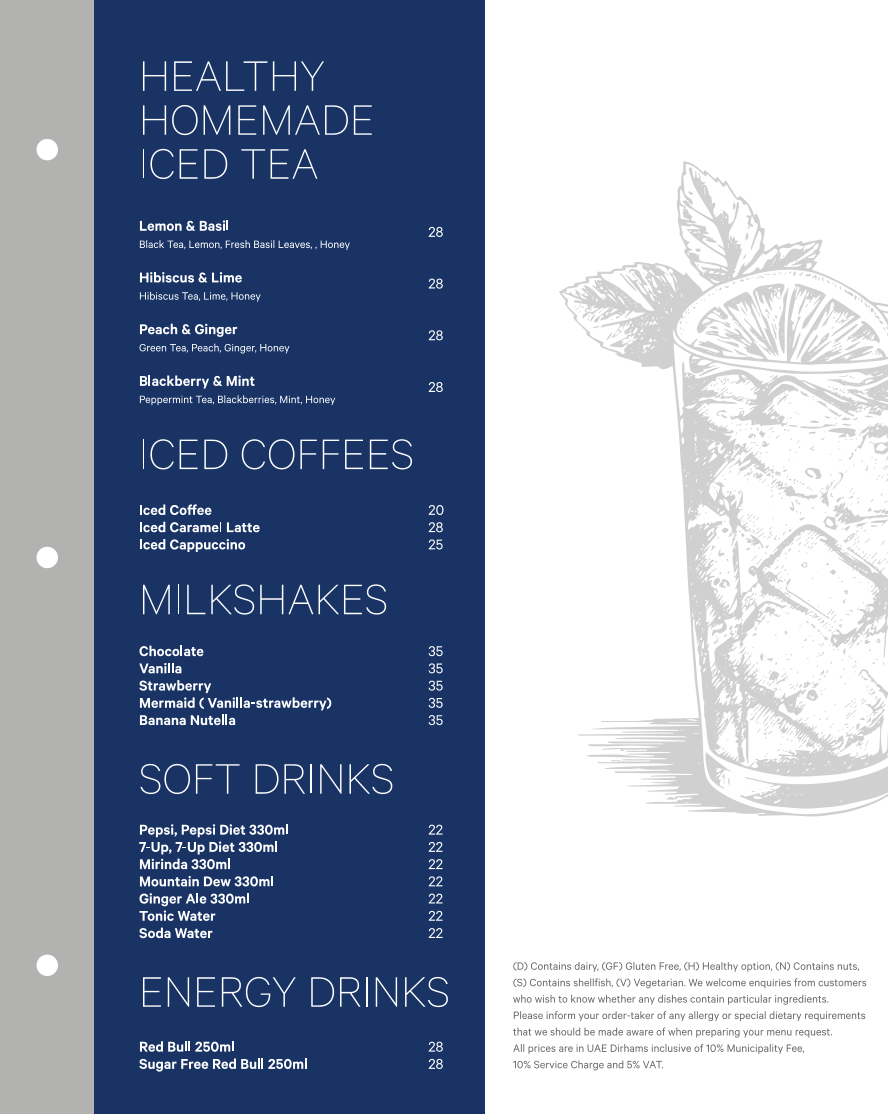 In addition to the delicious food, Al Qubtan Restaurant provides an extensive range of beverages, including freshly squeezed juices, signature mocktails like the CocoBerry and Tropical Mango Breeze, and a selection of teas and coffees. For those seeking a refreshing iced drink, options like Iced Coffee, Iced Caramel Latte, and Milkshakes in flavors like Chocolate, Vanilla, and Strawberry are also available.